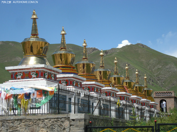 排成行的佛塔。阿柔大寺,藏语法名“尕日登群派林”,意为“阿柔具喜宏法洲”,亦称阿力克大寺,是藏传佛教格鲁派寺院。现在寺院主要由护法神殿、大经堂、八宝如意塔、住寺活佛府邸、僧舍等组成,是祁连地区规模最大、颇具影响里的寺院,信仰者当地的藏族、蒙古族、部分汉族群众,还有周边州、县的群众。相比较于像塔尔寺这样知名的寺院它的规模不算大,历史也不是非常悠久,但是它有它的特别之处,首先,阿柔大寺为阿柔部落的寺院;其次,阿柔大寺最早是一个帐篷寺院,常随游牧而移动搬迁;再者,在寺里有一个特大的牛毛帐篷,是根据当时的帐篷寺院是帐篷原形重新缝制的,其室内面积300平方米,是有16条拉绳,34顶杆,78更脚杆,一根衡量共同搭建起来的,公用牛毛1920斤,绳子2520米,牛毛掸子2160米,室内可容纳500-600人,缝制堪称吉尼斯世界之最。