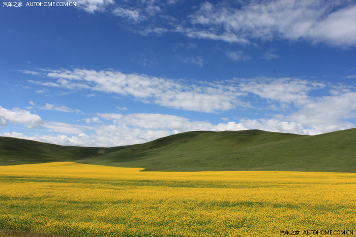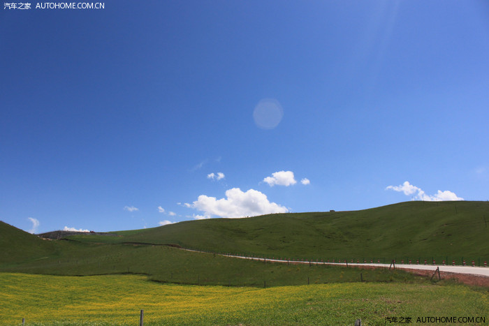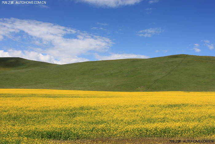 蓝天白云,绿草黄花,无限美景,目不暇接。
