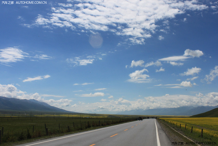 连霍高速一路平坦地伸向远方,远远的祁连山脉,蓝天白云,茵茵绿草,会使你的呼吸与心跳不自觉地变得放松。