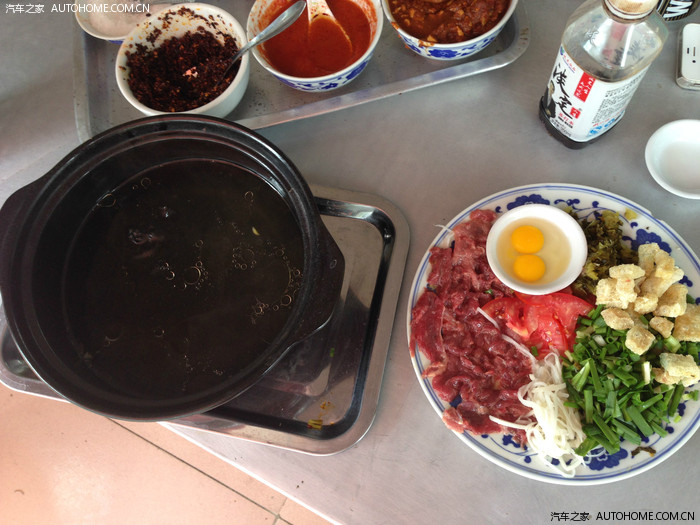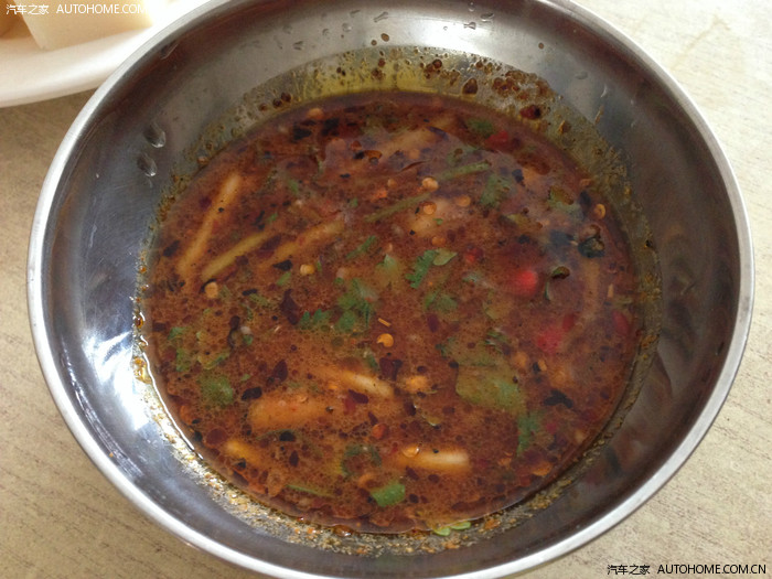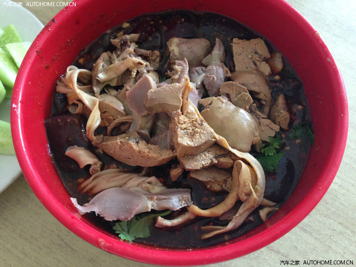 一碗生鸡血。一个合格的吃货就应该用于尝试。酸辣味的生鸡血味道很好,吃起来比煮熟的鸡血嫩很多。
