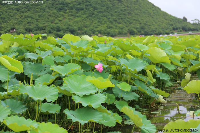 进入景区后路边的荷花