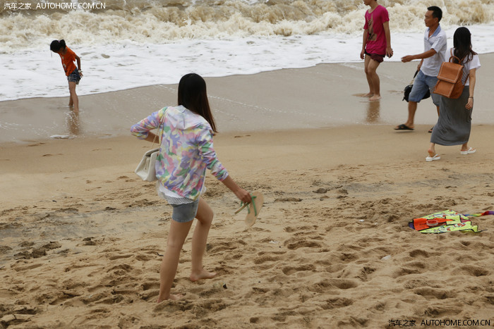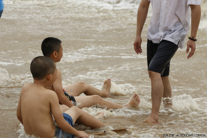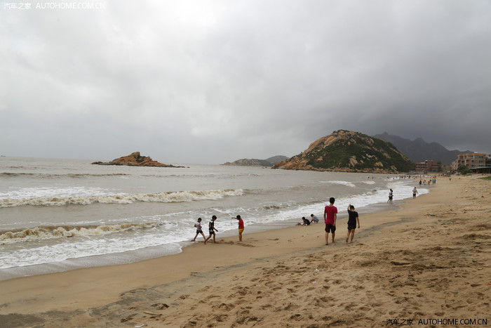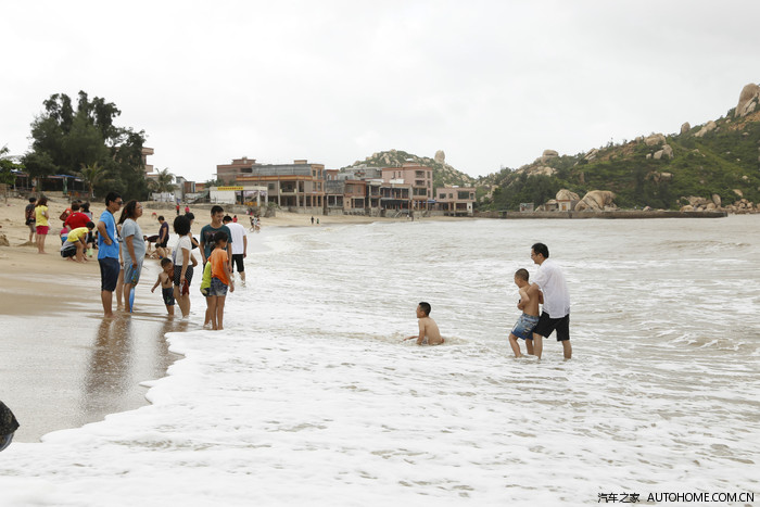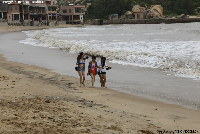 东平双月湾。台风刚走,沙滩漂浮着很多杂物,干净度一般。海水也是土黄土黄的浑浊,但这些都挡不住车友们的欢乐。