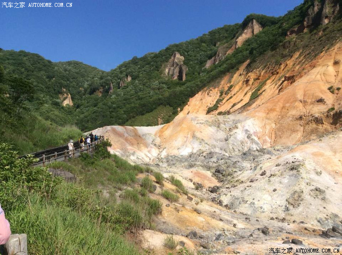 我们首先乘车前往登别地狱谷风景区,火山爆发后,由熔岩形成的一个寸草不生的诡异谷地,灰白和褐色的岩层被从地下不断冒出的热气所围绕,并常年伴随着嘶嘶声,犹如地下的魔鬼在呼吸,这里不仅是一处奇特的自然景观,同时也是登别地区许多著名温泉的水源发源地。