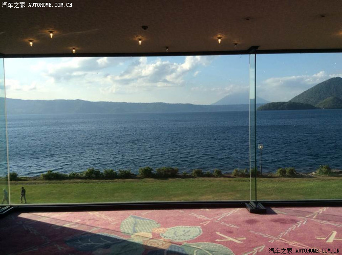 游览完登别地狱谷和洞爷湖观景台后,我们第一天的行程结束了,傍晚入住洞爷湖地区温泉酒店,此图为酒店大堂落地窗,屋外就是洞爷湖。