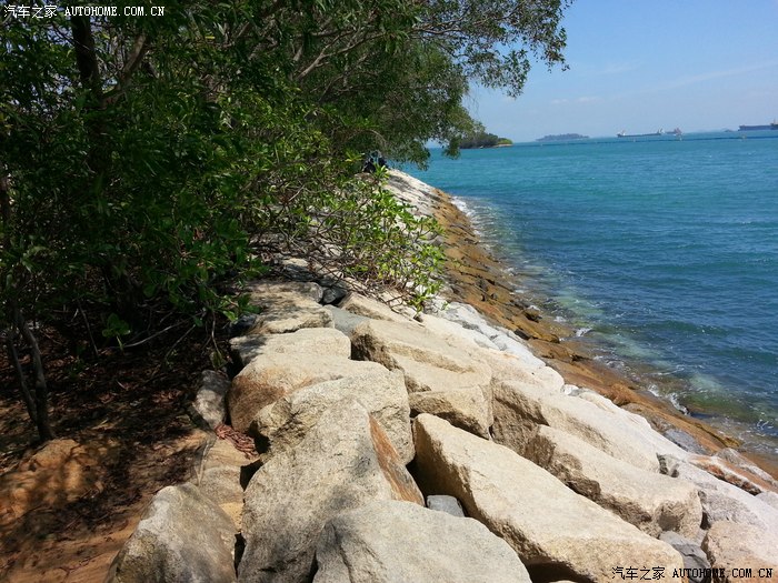 这个地方是有个故事要讲一下的。当时我看到海水后,就想尝尝传说中的海水是什么味道,我就光脚走向石头处,准备尝尝。由于海水常年拍打石头,石头变的太滑了,我脚刚踩到有水的石头上,一下子整个人侧翻到海水中了,除了脑袋都进水中了。我当时首先想到的是口袋中的手机不能进水,否则在新加坡拍的照片就完了,所以马上挣扎站起来了,赶紧掏出手机,迅速关机拔掉电池,还好同事赶过来接过手机处理一下,又晒了晒,开机后正常,手机算是保住了。回过神来发现右胳膊上被划了一个大口子,还蹭破了皮,流出血了,再加上海水的滋润很疼。整个人身上都湿透了,能感觉到衣服上都是盐。这时候过来了两个救援的人,发现我没事就让我们赶紧离开了。过一会儿,衣服算是干了,可是衣服上都是盐,太难受了。这下可算尝到新加坡海水的滋味了,并且给我胳膊上留了一道疤,到现在还有呢,算是新加坡给我留的纪念吧。