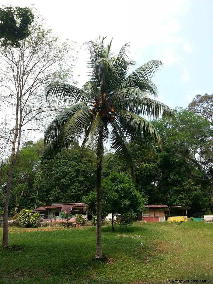 小屋里面放着音乐,听不懂,好像是马来歌曲。这个树是椰子树吗