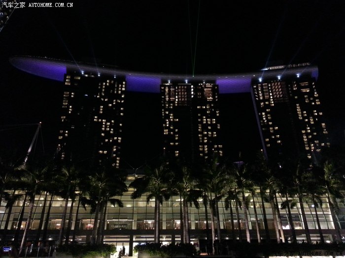 夜幕下的空中花园大楼,顶上那个是个大船的造型,期待上去看看