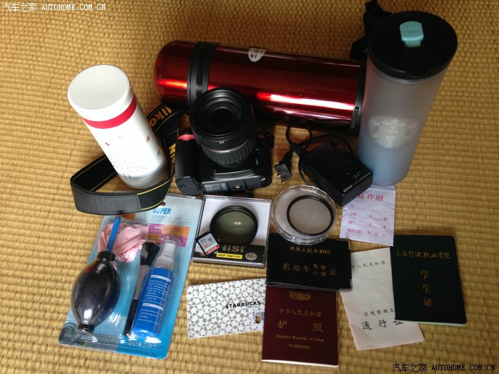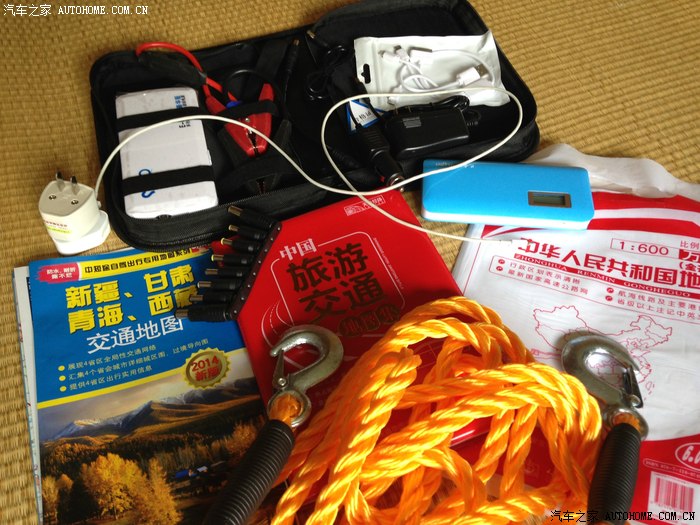 必要药品、地图、记事本、马克笔、车上音乐、衣服、拖鞋、单反、SD卡、三脚架、UV镜(偏光镜)、小刀、电脑、移动电源(车用应急启动、笔记本、手机通用)、边防证、牵引绳、玻璃水、打气泵、食物、水、红牛、随行杯、保温杯、免煮咖啡、计时器、毛巾、洗漱用品、防晒霜、垃圾袋