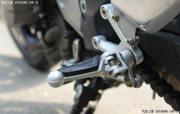 新款的折叠脚踏有些改进,看起来防摔性能更强,另外一提, 原厂出厂时的设计,对街车所需要的倾角已非常足够,要
