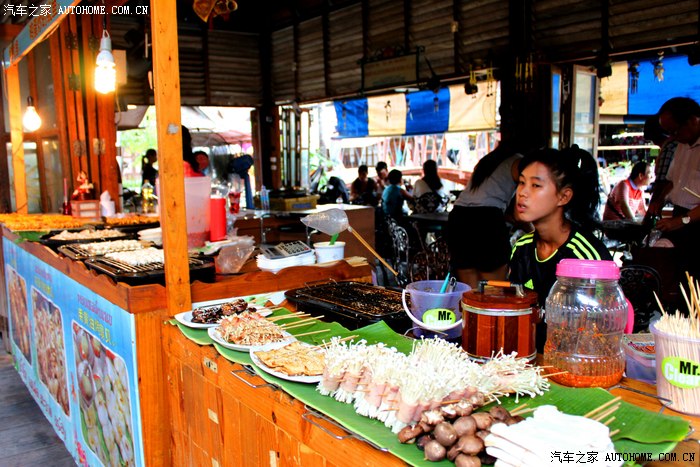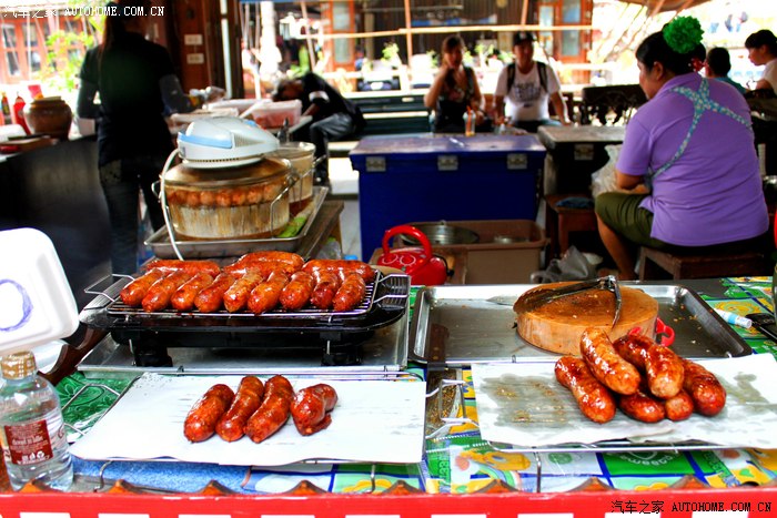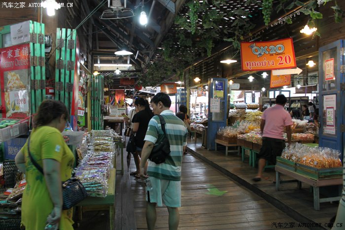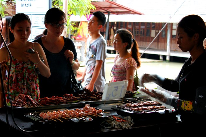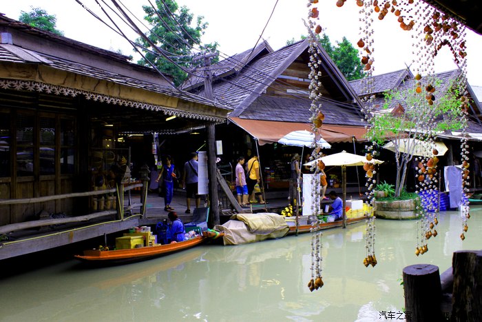 泰国的水上市场主要分布在湄南河向西的一条支流上规模较大,别具特色吸引了众多的游人。市场里各色小商品琳琅满目,穿梭往来的小船载满了各种新鲜水果。在这里可以品尝到各种风味的泰国小吃,看着一条条小船在河中交错往来,两岸的商铺和民宅在水中相互辉映,桥上游人如织令人深感亲切而又典型的泰国印象。