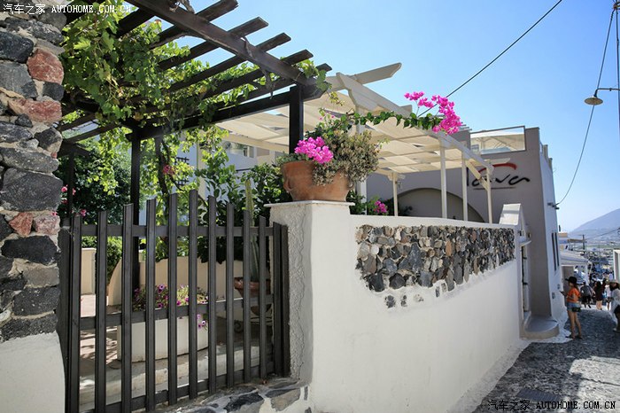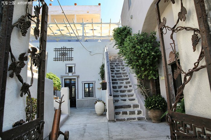 看到大铁门上的葡萄想到了,岛上有种植葡萄,它的营养来源就是火山灰,这个葡萄是长在地上的,不是在藤上的,果实去偷偷尝过,有点酸,当地出的甜酒比较有名,个人觉着口感太腻了
