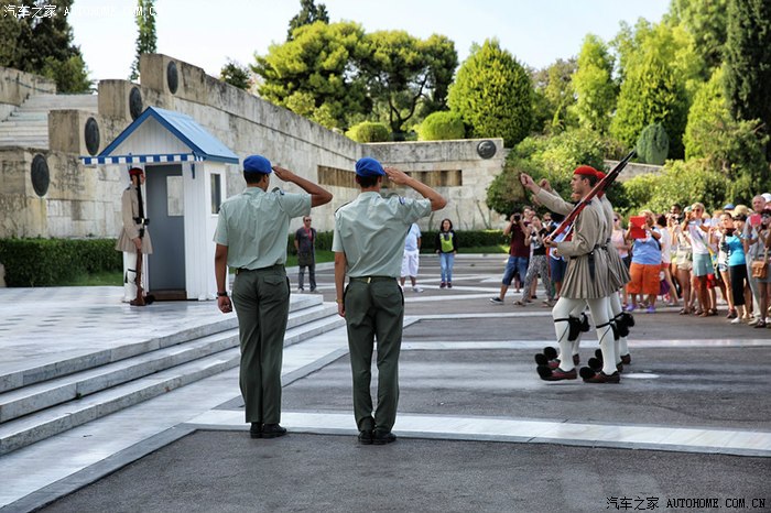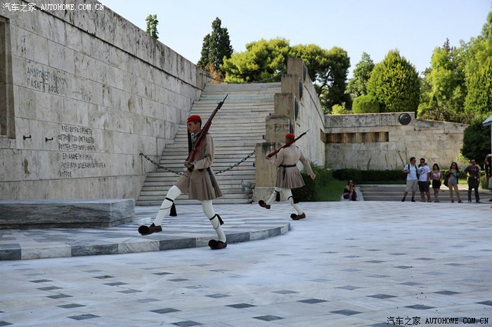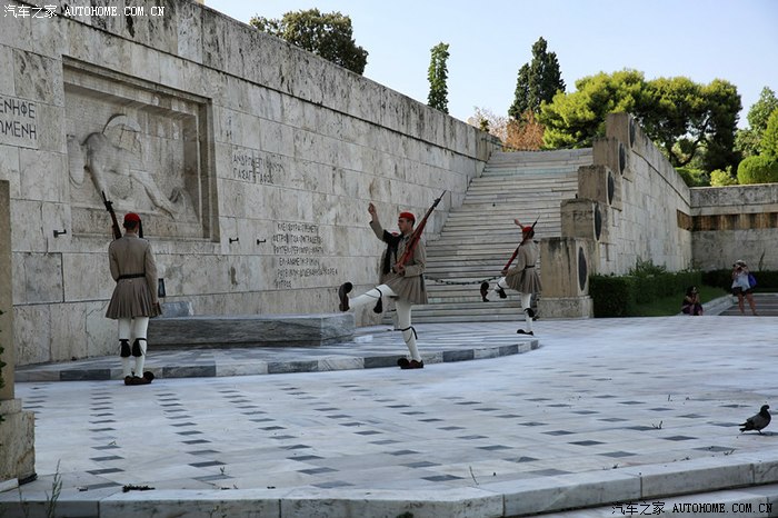 说是总统卫队的卫兵,穿的很带感,在被土耳其统治时期希腊国奋起反抗时穿的战袍,所以一直保留到现在,如有不对,敬请指正,本人不是干导游的,也不是学古代文明的,只是通过互联网略知一二,要知道一边发一边查资料很痛苦的,你们大家想想撑了半天原来只放了个屁的感觉就对了。。。