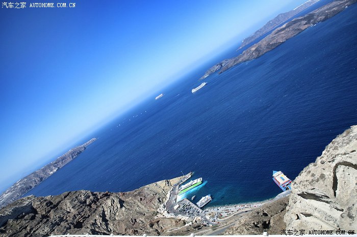 这个是站在圣托里尼岛高处拍的船出港口,特别有感觉