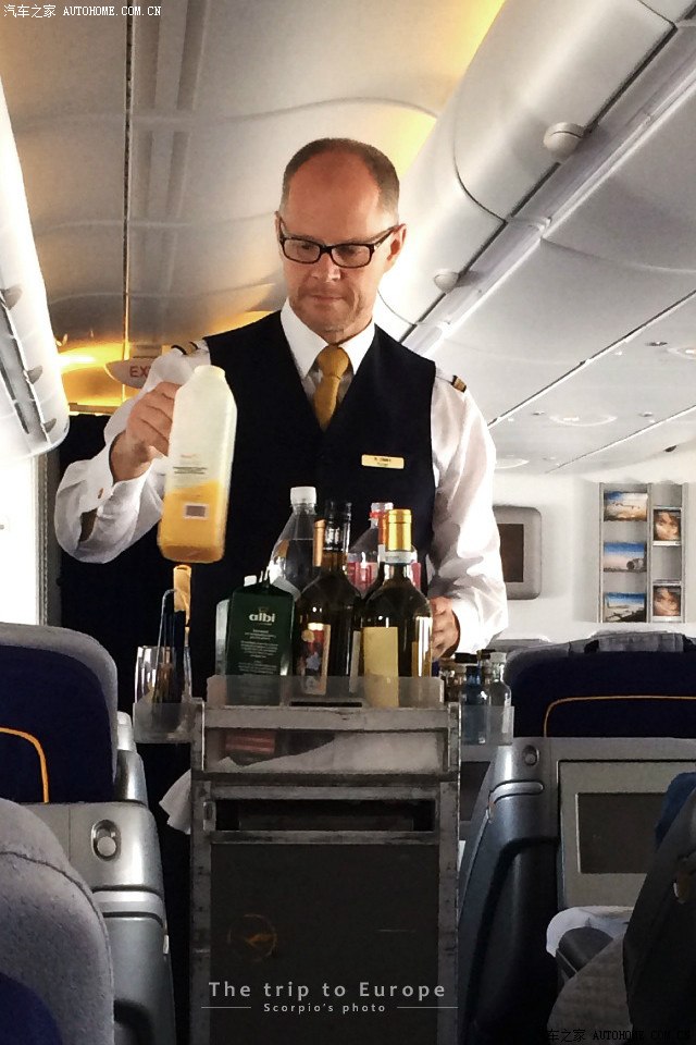 有别于国内的空姐,人家居然是空哥,而且从我LD的审美看,超帅!为我们端上的是餐前开胃饮品,气泡香槟或橙汁。