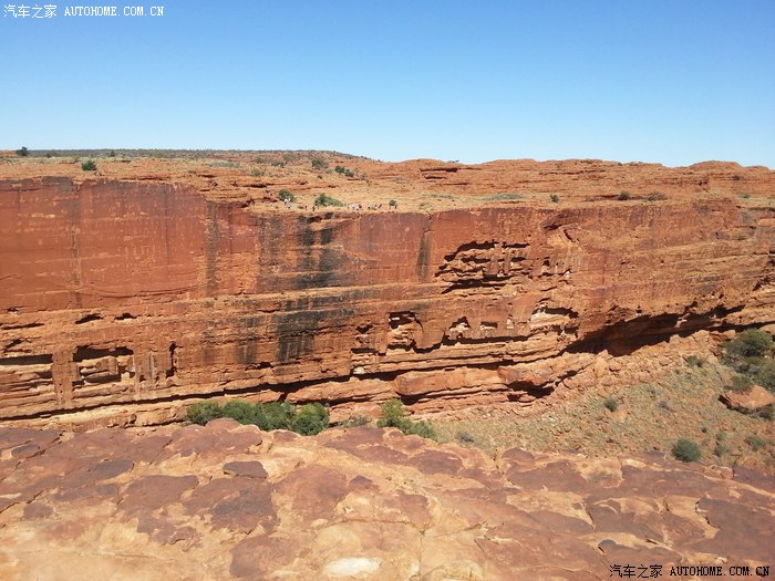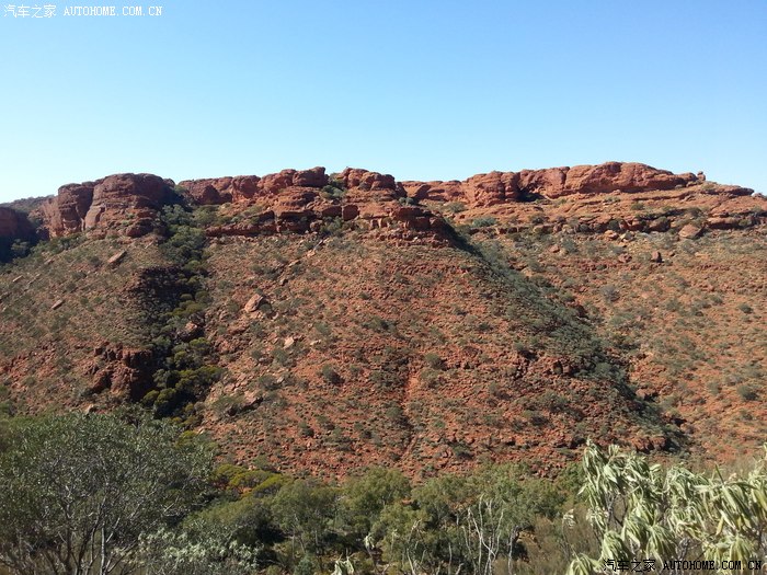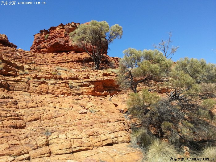 Kings Canyon的爬山路徑分成兩個,一個是Kings Canyon rim walk,也就是爬到山頂走一圈,全程6公里,來回約3.5小時,全程沒有什麼樹木,而且爬山的困難度很高;另一個是Kings Canyon creek walk,也就是沿著溪谷走(不過這個時節河谷早就乾枯了),全程2.6公里,來回只要1小時,全程因為有樹木,稍微有點遮陰,爬山的難度比較低。