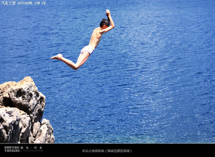 30、跳水,站在5米左右高的湖边岩石上跳下去,水很清澈,能见度至少7-8米