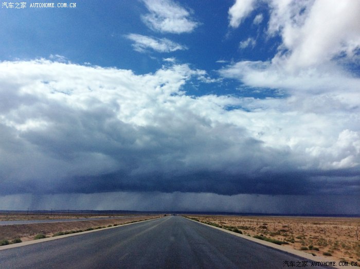 天空黑暗,一场暴雨就在不远处(这在戈壁滩上十分罕见噢)