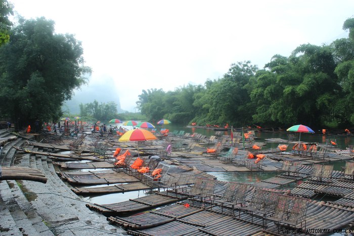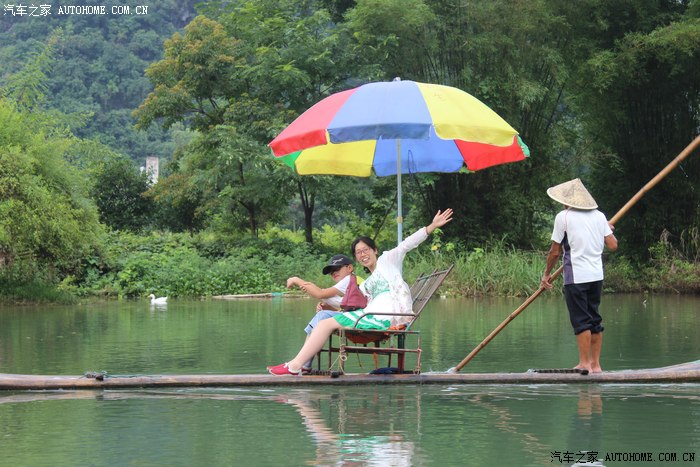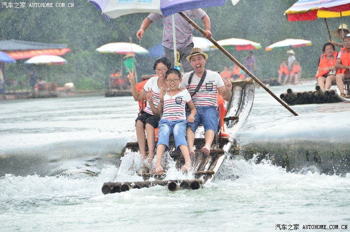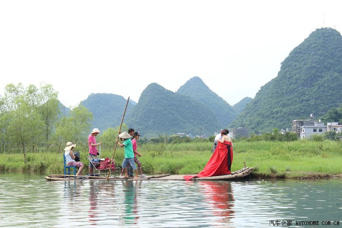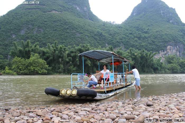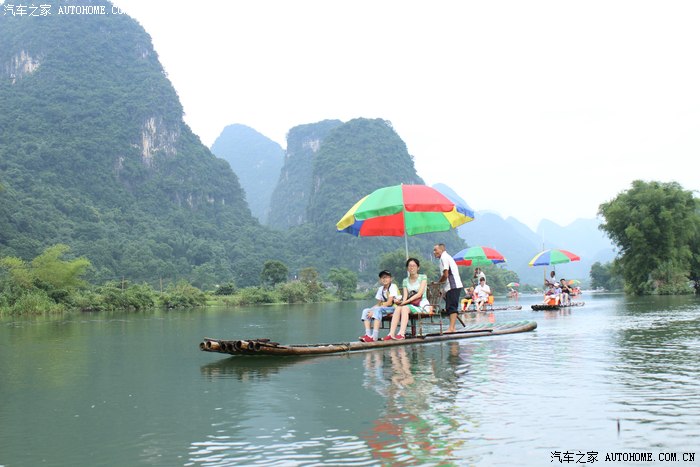 游漓江一定要到这坐竹排!吹吹江风、摸摸江水、看看江景!
