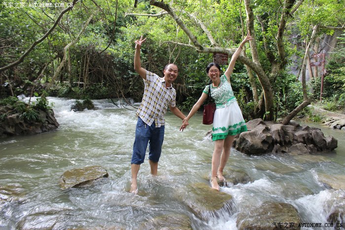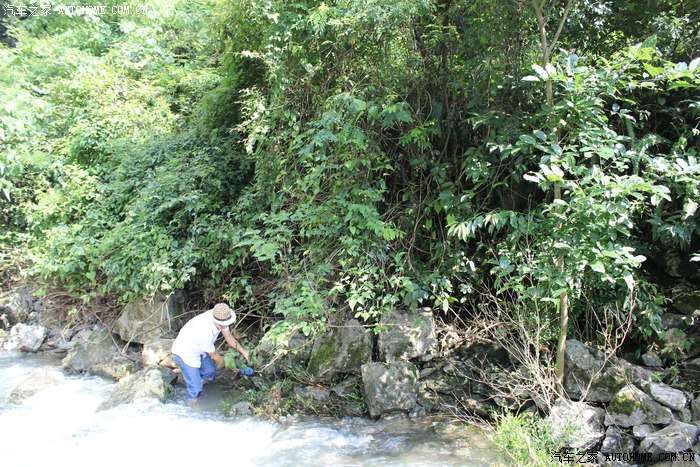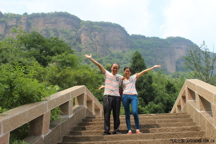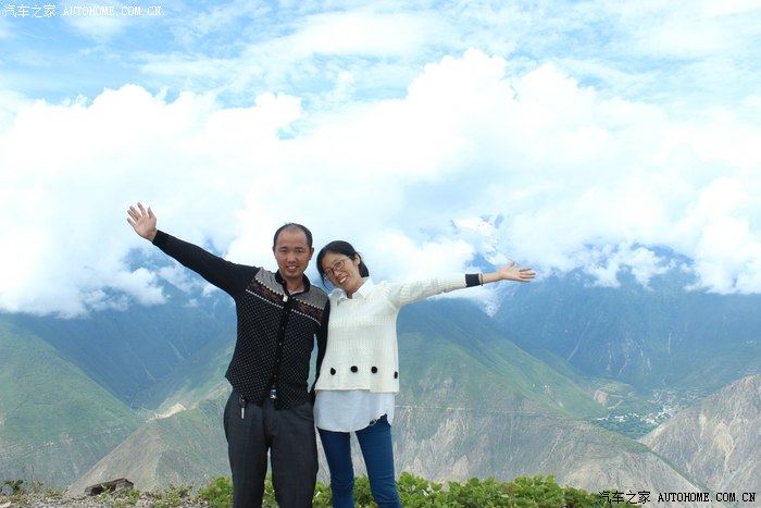 终于开出谷底,路宽了点,有地方停车了,来一张纪念照!