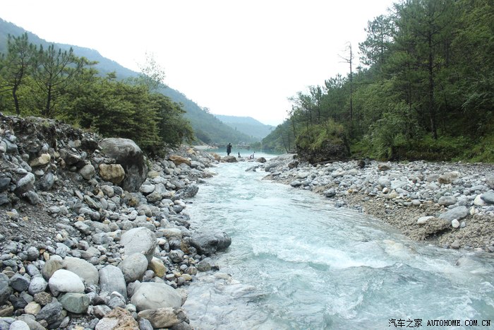 后面一路坎坷,中间有一次底盘右侧被石头顶住,进退不得,石头太大又拿不出来,奔奔哥提议往右打方向盘后退,果然可行,车子终于动了,填入一些小石子,改前进,终于出来了!还有一次涉水行驶,在水中央碰到石头,方向一歪,差点熄火了,那个水快淹到排气管,好险啊!谢天谢地!晚上12点多到达鲁朗,天下大雨,没地方住,睡车上了!