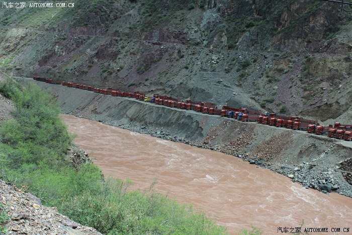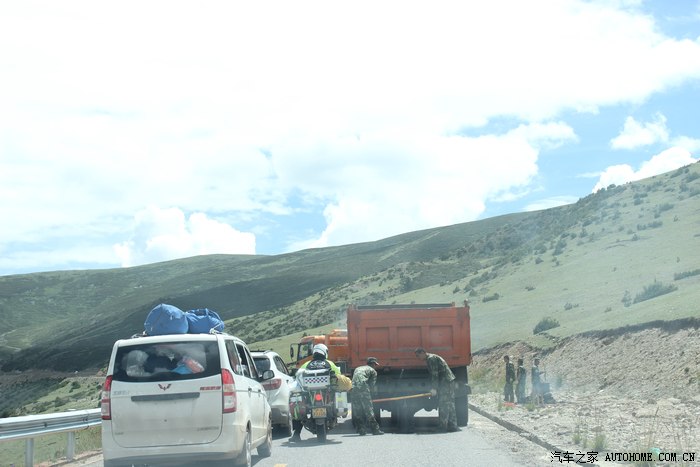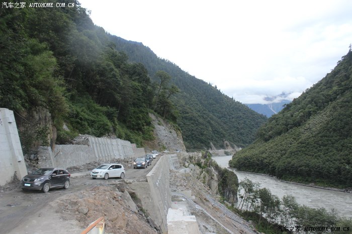 由于通麦大桥及里面部分路段是单向行驶,实行交通管制,就在这里等了5个多小时,真难啊!还好有警察维持秩序!下午5点多得到放行!