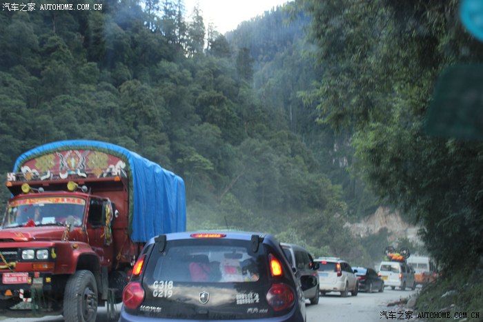 12点多到达通麦镇,镇上汽车排起了长龙,天气很热,只能在路旁等!