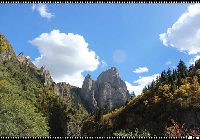 地理位置:“扎尕那”是藏语,意为“石匣子”。解放以前属卓尼县杨土司的四十八个旗(藏语称为玛日)之一。当地的始祖为吐蕃第三十二朝顺赞干布的后裔。扎尕那山位于迭部县西北34公里处的益哇乡境内,是一座完整的天然“石城”,俗有“阎王殿”之称。地形既像一座规模宏大的巨型宫殿,又似天然岩壁构筑的一座完整的古城。正北是巍峨恢弘、雄伟壮观、璀璨生辉的光盖山石峰,古称“石镜山”,因灰白色岩石易反光而有其名;东边耸峙壁立的俊俏岩壁,凌空入云,云雾缭绕;南边两座石峰拔地而起,相峙并立成石门;再南至东哇、纳加一带,峭壁矗立,清流跌宕,水磨飞轮,流转不息。山势奇峻、景色优美,犹如一座规模宏大的石头宫殿,这片世外桃源虽然早在近百年前就被洛克誉为亚当和夏娃的诞生地,但至今仍是一块处女地。
