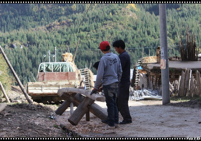 等待我们前来的道吉大哥正在门口修葺晾晒青稞的木架。
