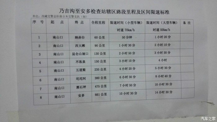 说明:从格尔木南山口取限速条,到安多661公里限时10小时30分,当时看到此限速时间,觉得限速有些夸张,开始走了以后才发现,限速是有道理的,况且我们一路疾驰都走了14个小时,因为从五道梁开始到沱沱河的一路(可可西里段)路况极度不好,有翻浆大坑,并且有大量军车,造成堵车。住宿方面,安多大部分酒店住宿条件较差,且经常停电,我们住三江源大酒店,安多最好的酒店,一进安多第一个看到的酒店,这里吐槽一下此酒店,标间380元一晚,押金500元,我们20:00入住,21:00停电,一晚上卫生间没法上,没有开水喝,找服务员没人管,要想想那里可是4800的海拔啊。。。早上8:00除3名服务员及1名保安,其他没人,无法退房,后来住宿旅客打110,前台才来退住房押金,因好多驴友赶路,其间没退押金就提前走了。。。
