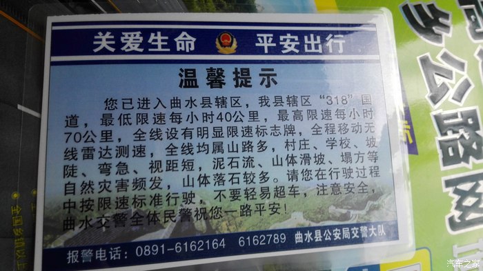 说明:此路段完全进入西藏境内,464公里限速检查站较多,印象中不少于7、8个,路况还可以,那曲过了以后有一段5公里左右的路况有翻浆大坑,共计行驶8个多小时,16:30左右到拉萨。在这里吐槽下限速检查站的警察,在快到那曲的前一个检查站,我提前20分钟到,和我在上一站一起取限速条的车在我前面先到该站,不知怎么就过去了,我去给条时,警察说我超速20分钟,扣我驾照,并罚款500元,我问我前面的车怎么过去的,他说跟我没关系;我又问这罚款怎么交,这警察说让我到一边去,别在窗口妨碍他们工作,随后旁边其他的人给我说他们是想要我意思一下,我恍然大悟,出门在外,我也没说什么,随即将车上带着的1条烟给奉上,才得以顺利通行。。在此问候那几个人民养的败类,CNM!另外,给去西藏的朋友提个醒,西藏境内的限速站警察都是按他们手中电子表的时间记录超速,请不要按自己表的时间卡着点到,以防个别人民养的败类使坏,到每个站点的时间最好比限速规定的时间晚5分钟。