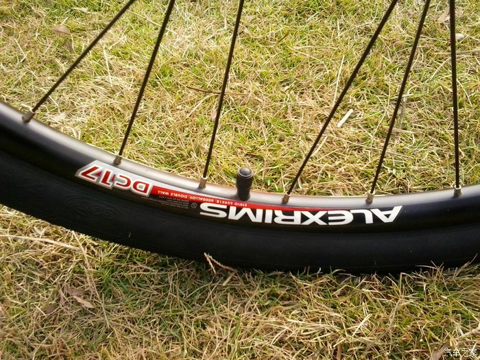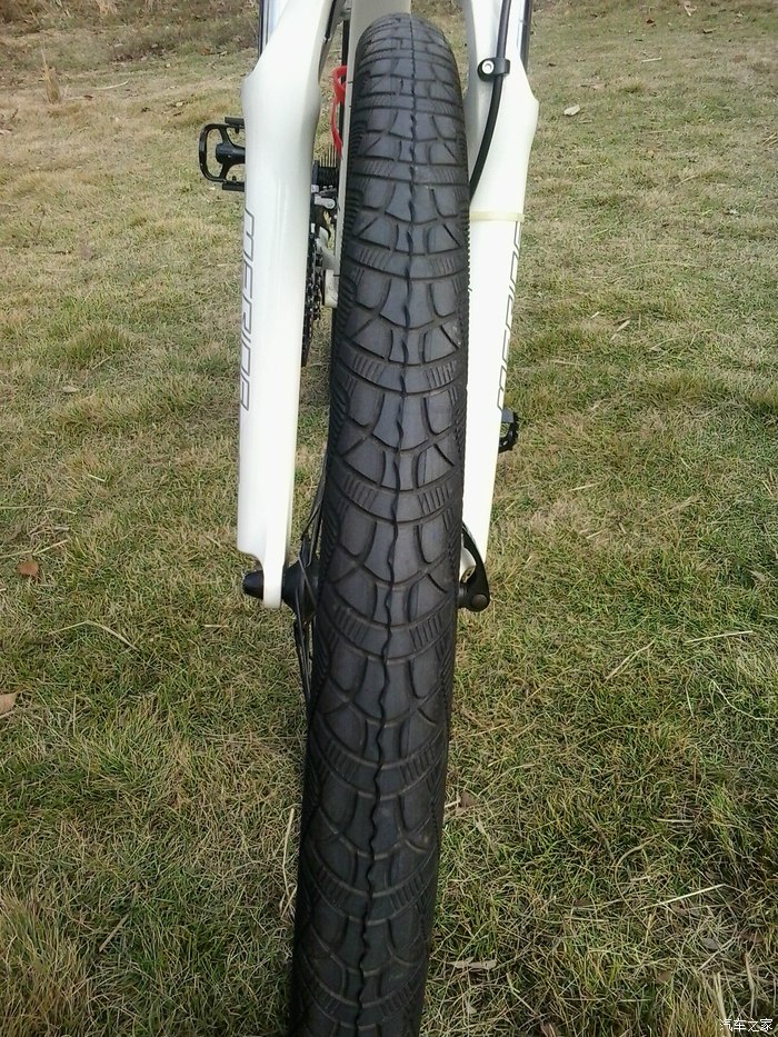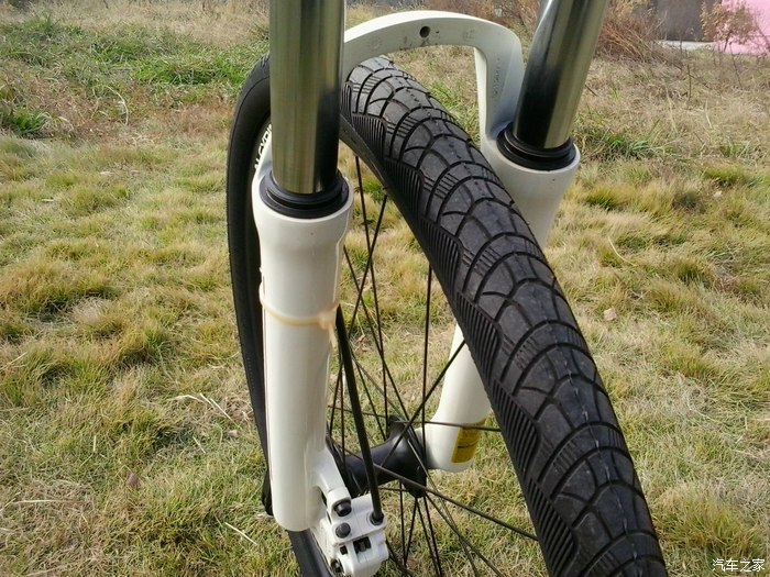 ↑自行车前轮。新车,车胎中间还有一圈没有脱落的皮