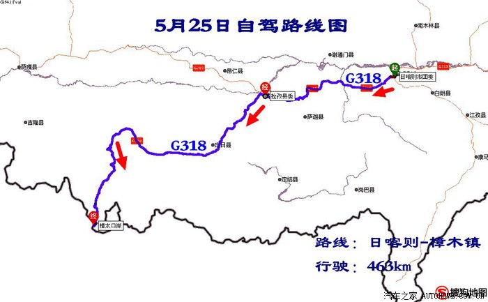 路线:日喀则(G318)-拉孜县-嘉错拉山口-白坝乡-定日县-鲁鲁检查站-岗嘎镇-通拉山垭口-聂拉木县-樟木镇