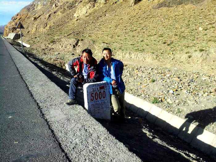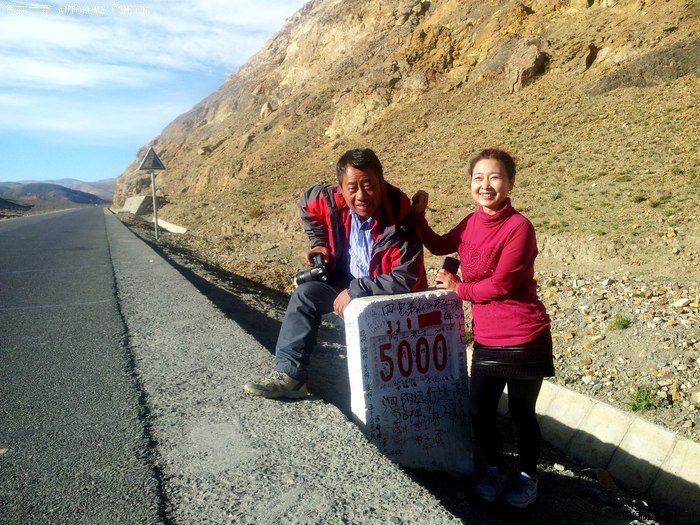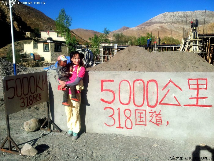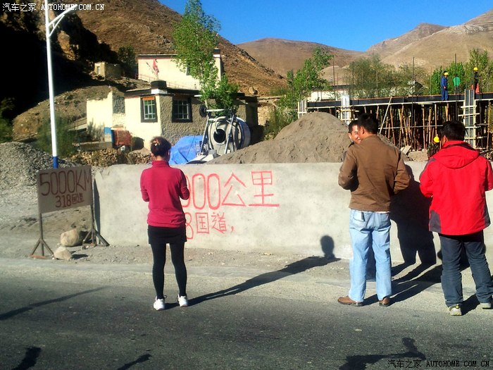 走出日喀则,开始没发限速条,走了几十公里,来到318国道5000公里路牌,这里正在建筑施工,原来的5000公里纪念碑已经拆除,大家在里程碑处留影做短暂停留。
