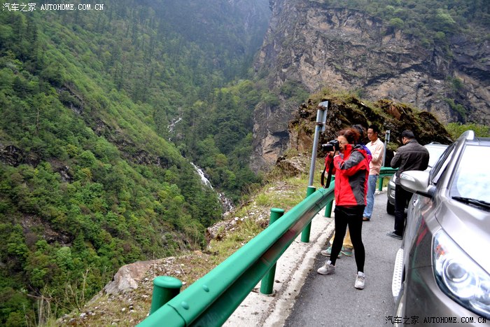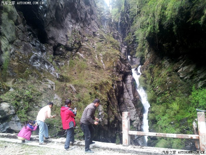 路旁拍摄瀑布休息