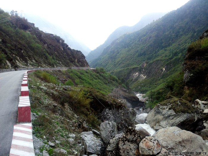 道路沿着樟木沟傍山而下,路旁从绿草开始,逐渐变成参天大树。