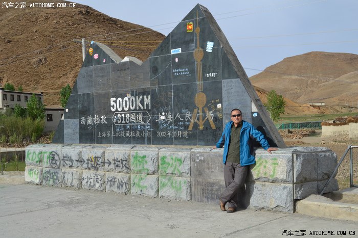 没有了大的纪念碑,大家只好找到附近这块5000公里路碑拍照。