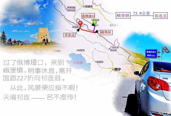 - 行程1: 车到青海峨堡镇,离开G227,驱车前往魂牵梦绕的祁连县   大致路线:峨堡镇-阿柔大寺-祁连县
