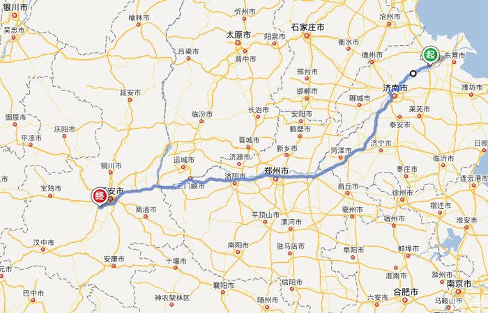 这是今天的行程,路过济南、菏泽、开封、郑州、洛阳,最后到西安。选择住在户县当然也是为了第二天可以省去住在西安市区出城的时间。
