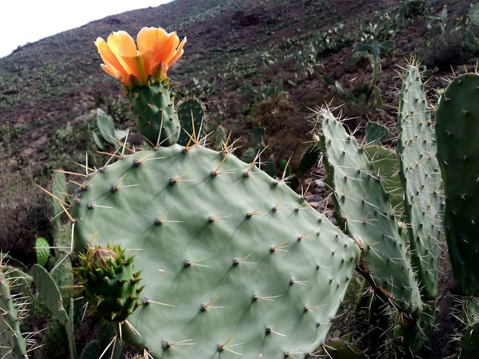 如果秋天到这里,可以吃到仙人掌果子。现在只能看花了。