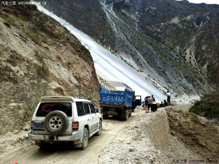 第二个无名垭口上迎面遇到这台车,附近没有错车的地方,他只好后退二百多米,才勉强错车。
