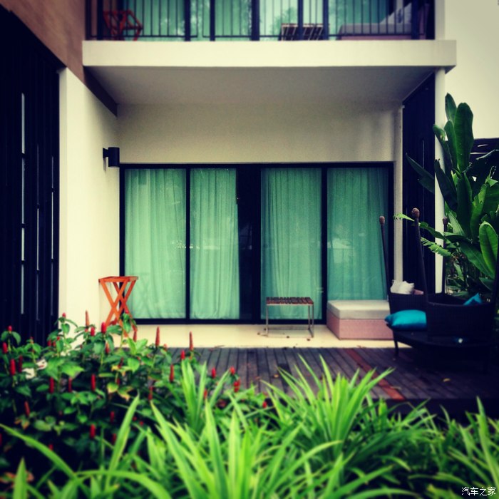 这是我房间外 很舒服 紧闭阳台是因为蚊虫还是相对较多 不过每个阳台上都有桌椅沙发 很惬意!