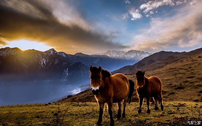 在光影中,两匹肥马来到我们身边,毛发在余晖下泛起金光。漂亮,实在漂亮。