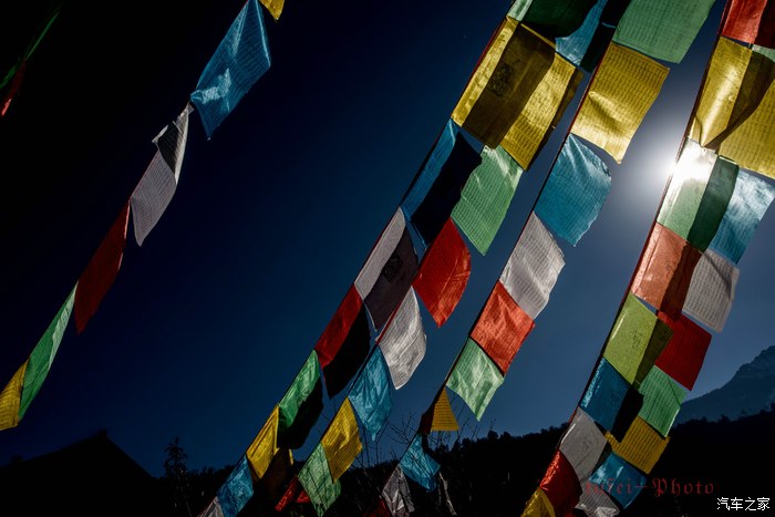 逆光中的经幡,透出密密麻麻的经文,带给人们一种美好的祝福。