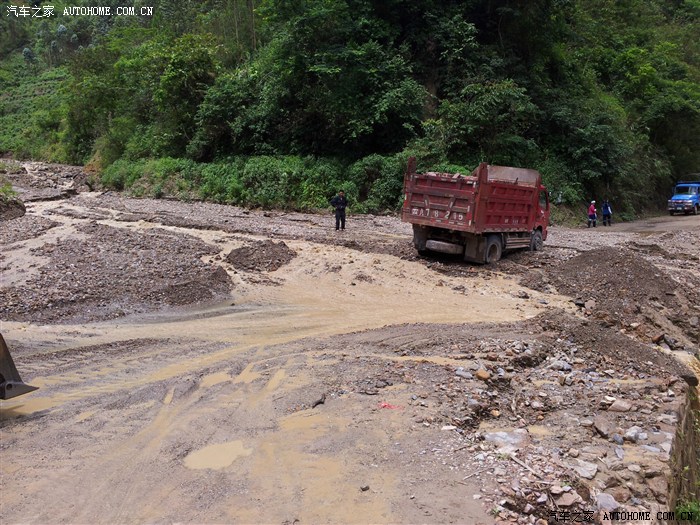 这个泥石流比较危险,这个大车就陷到了这里,路很软,我是从上方站人的位置,挂四驱顺利通过的。