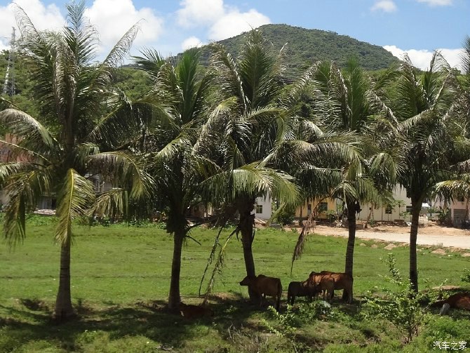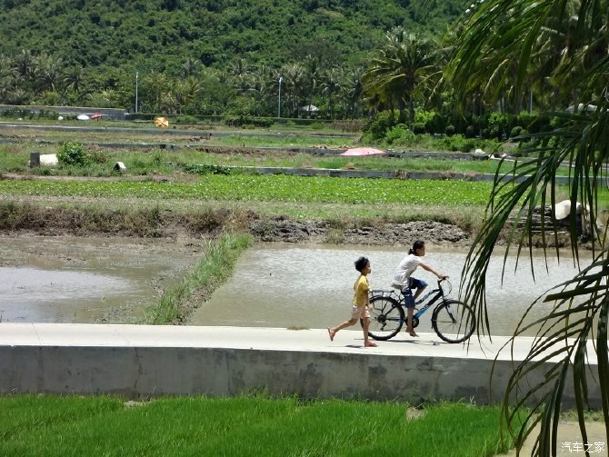 用了2个多小时,到达了田独镇,路程的一半,第三个岔口。 吐槽一下三亚的交通,所有的岔路口,包括旅游区和镇上的,木有一个红绿灯。 也木有一个交通警察。大车,小车,自行车,摩托车,行人,都挤在一条路上。 交通规则基本木有,抛开各类高大上的度假酒店,这里基本处于农业社会的有木有~ 镇边上的村