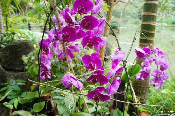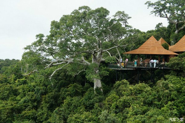 走过岔口,不远处就是一个加油站,过了加油站没多久就可以看到这里,热带天堂森林公园。 门票175元,包括景区内的电瓶车。 都到三亚了也没能免俗,全国人都熟知的一个地方。花了175元上景区里头逛了一下还是有点儿意思 。 森林公园总共有三个景点:兰花谷、过江龙索桥(《非诚勿扰2》里舒淇走过的索桥