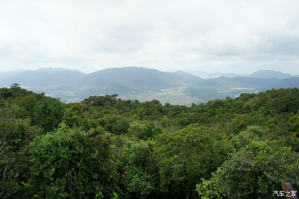山顶。在这里可以俯瞰亚龙湾,风很大,头发被吹得乱哄哄,有点小冷。