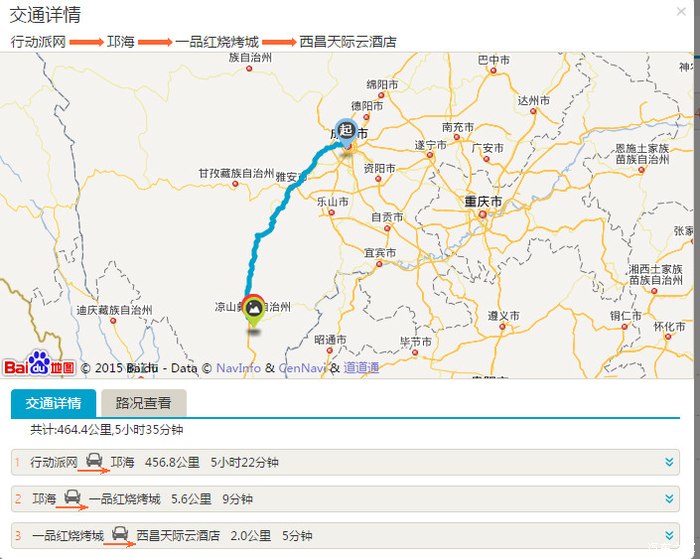 - 行程1: 【第一天】费用:¥685.2 里程: 464.4公里   成都,西昌