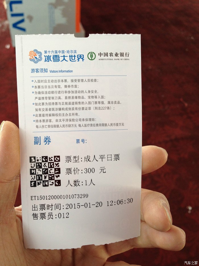 ↑冰雪大世界门票。成人票300元一张,但物有所值