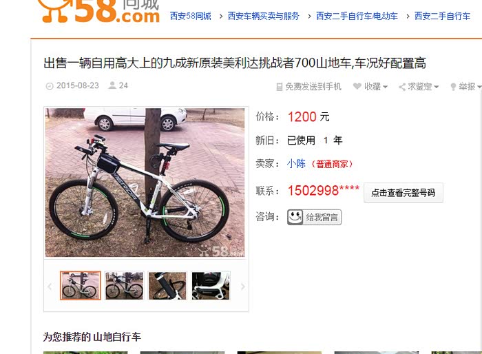 //xa.58.com/zixingche/23081582289313x.shtml?psid=171872018188787650032219675&entinfo=23081582289313_0&addtype=level7&PGTID=171872018188787650032219675&ClickID=4&iuType=b_1&pts=1440337984688